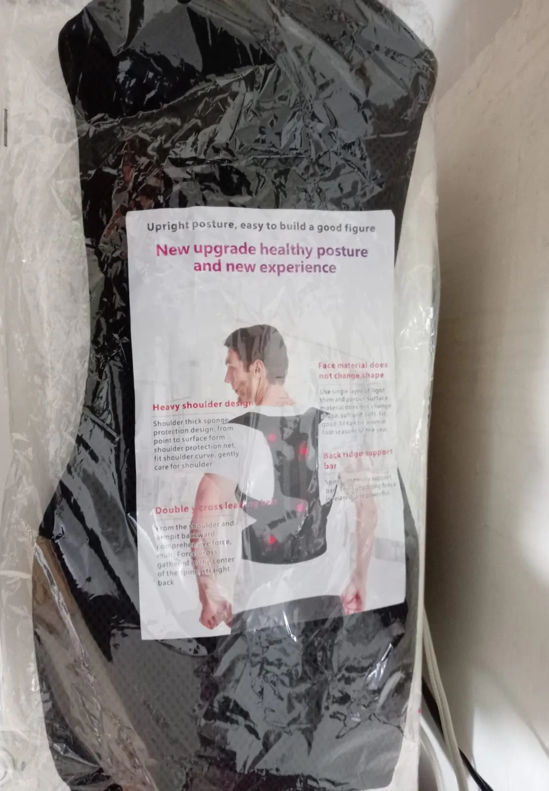 It arrived quickly, in perfect condition, and it's comfortable, but it's not too tight. I ordered an XL because I knew I have broad shoulders, and even so it was difficult for me to put it on. Apart from that, it fulfills its purpose and effectively helps keep my back straight, but not my neck.