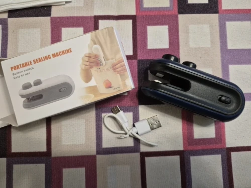 cute, lightweight and functional, does its job, seals, cuts and has a magnet on the back side, a cable included and a small instruction manual, easy to use, arrived before the expected date.